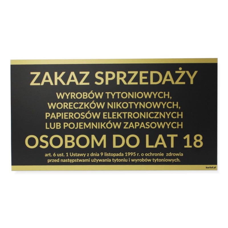 Plakietki z plastiku informujące o tym, że w sklepie, punkcie handlowym lub knajpie (barze, restauracji) wybrany asortyment lub pozycje z oferty (strefa 18+, oferta dla dorosłych) są sprzedawane jedynie osobom dorosłym - pełnoletnim. Co oznacza, że osoby nieletnie nie kupią energetyków, alkoholu, wyrobów tytoniowych, papierosów elektronicznych i pojemników zapasowych.